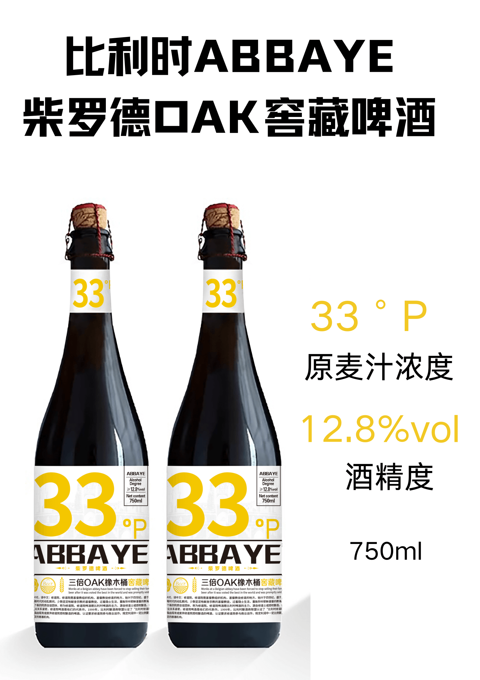 三倍OAK为代工产品,酒精度:12.8%vol,原麦汁浓度:33°P